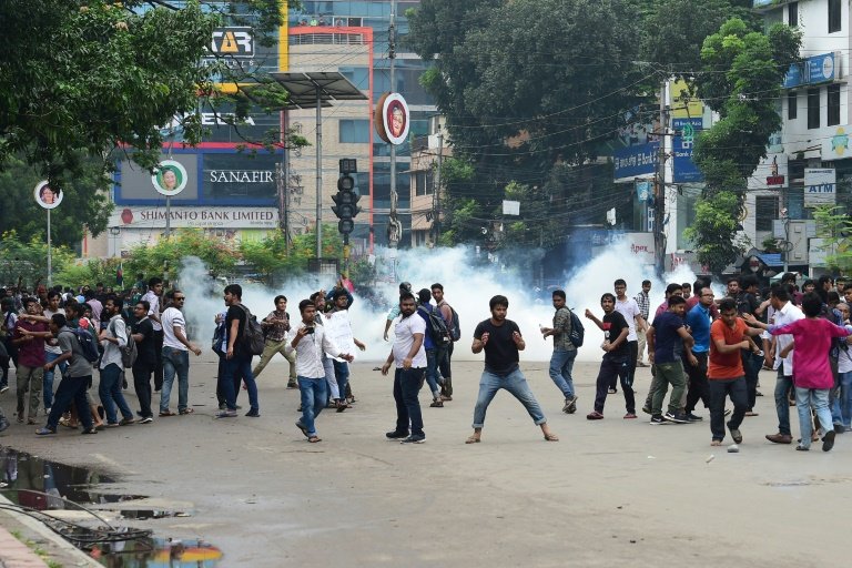 Dans le quartier de Rampura à Dacca, des heurts ont opposé lundi des centaines d’étudiants à la police, qui a utilisé des gaz lacrymogènes pour les disperser, a affirmé à l’AFP le chef de la police locale Rafiqul Islam.
