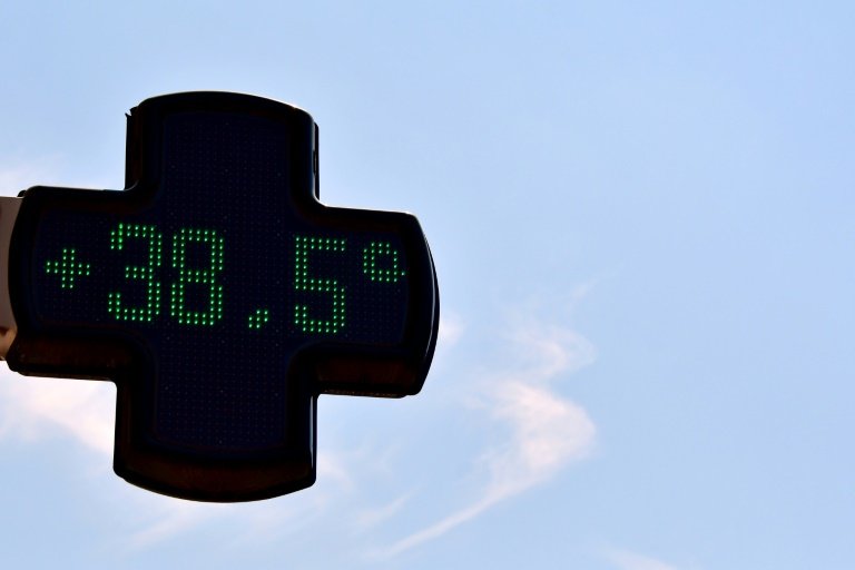 AFP / PASCAL PAVANIUn thermomètre sur la façade d’une pharmacie à Toulouse indique 38,5°C, le 6 août 2018 lors d’un épisode de canicule