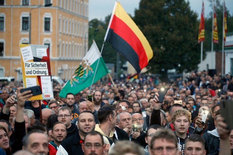 AFP / Odd ANDERSENL’extrême droite allemande s’est à nouveau rassemblée le 30 août 2018 à Chemnitz contre la politique migratoire d’Angela Merkel à la suite d’un homicide dans cette ville de l’est de l’Allemagne“Tous les jours, je vois des gens âgés, des jeunes défavorisés, des Allemands, et quand on voit tout ce que les demandeurs d’asile obtiennent, je ne veux pas en dire plus, ce n’est pas étonnant que les gens explosent”, dit à l’AFP un des participants, Tobias, un quinquagénaire qui habite la région.