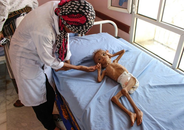 Dans un hôpital de la province de Hajjah (nord), un photographe de l’AFP a assisté à la pesée d’un enfant n’ayant plus que la peau sur les os. Plus loin, une infirmière tentait de réconforter un autre enfant rachitique, allongé sur un lit.
