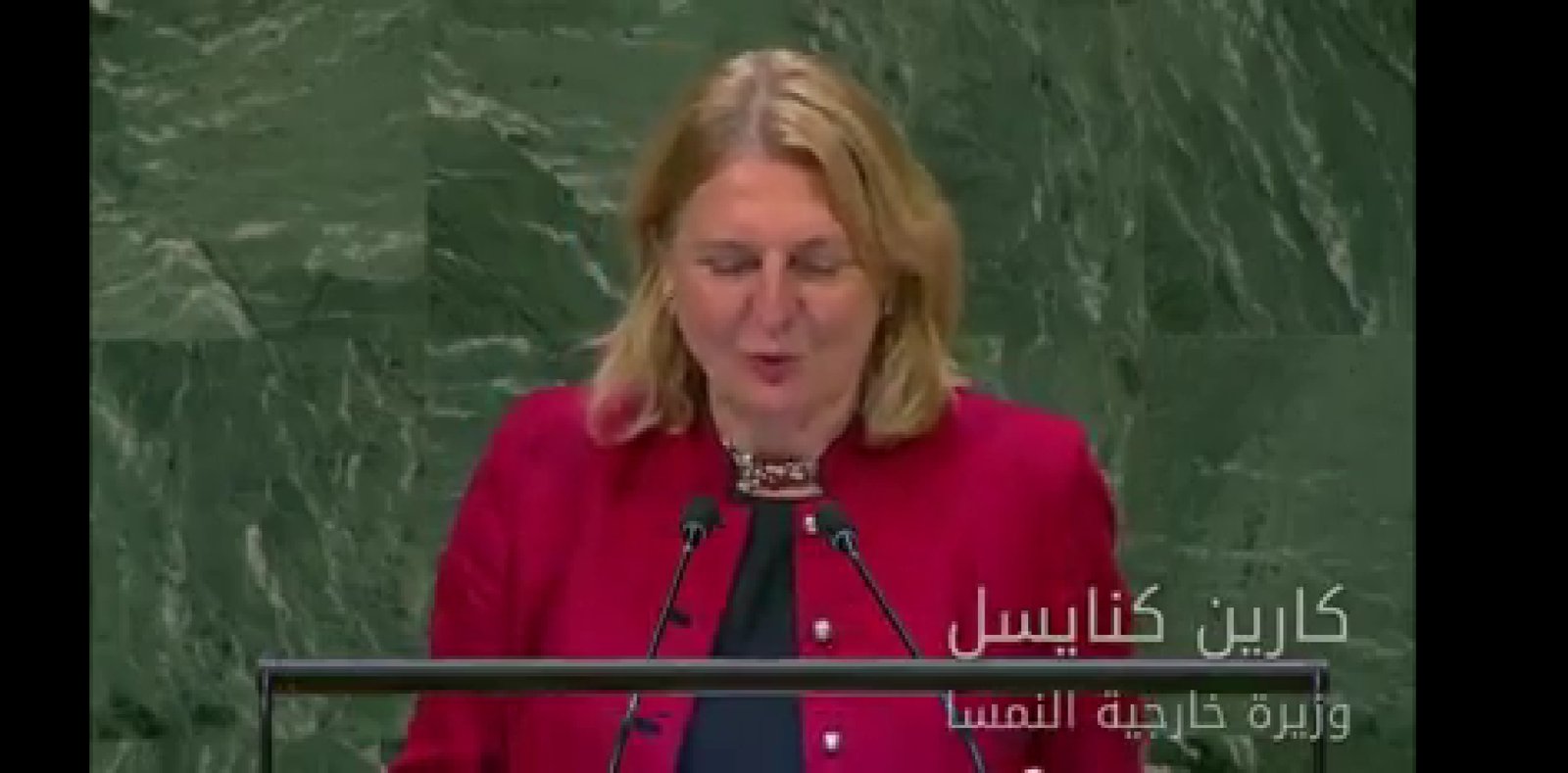 La ministre des Affaires étrangères de l’Autriche Karin Kneissl a créé la surprise, s’exprime en arabe au début de son discours devant la 72e Assemblée générale des Nations Unies, à New York.