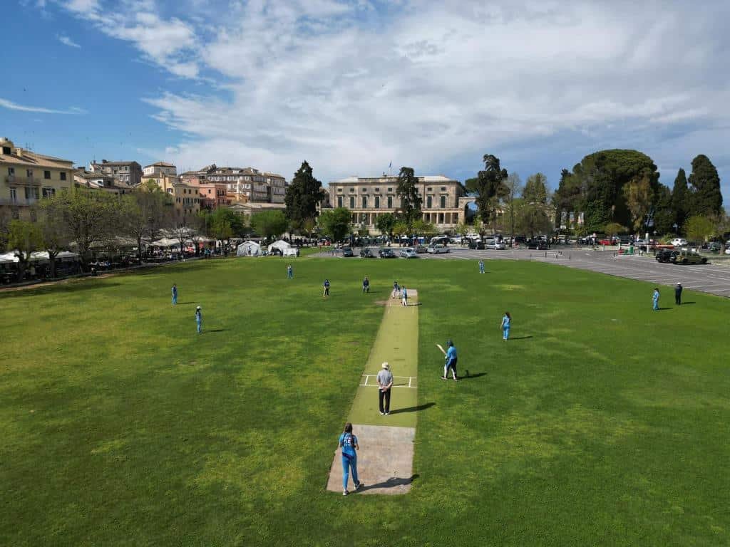 Plus tôt en avril, cette vision du cricket communautaire a pris vie à Corfou, en Grèce, sur le green historique du centre-ville, pour marquer le 200e anniversaire du cricket grec sur l’île.