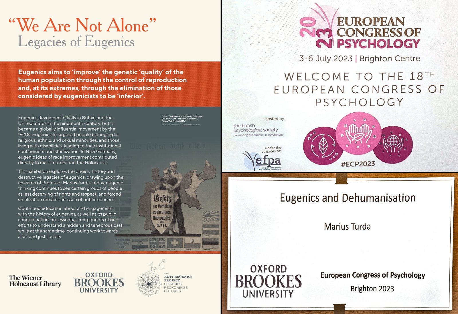 A l’occasion du congrès, le BPS a également présenté des parties de l’exposition « We are not Alone: Legacies of Eugenics », organisée par le professeur Marius Turda. Les panneaux de l’exposition sont visibles ici :