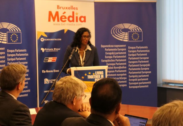 L’eurodéputée Maxette Pirbakas, organisatrice de la réunion, s’est adressée aux dirigeants des minorités religieuses d’Europe, au Parlement européen. Crédit photo : 2023 www.bxl-media.com