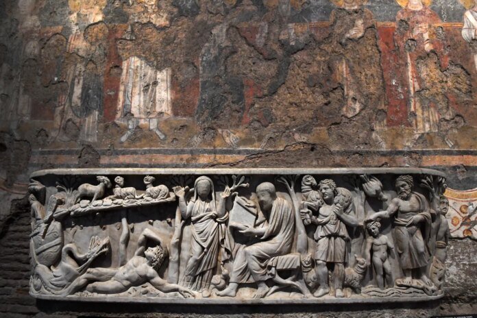 Où, quand et pourquoi a-t-on commencé à représenter le Christ sur les sarcophages ?