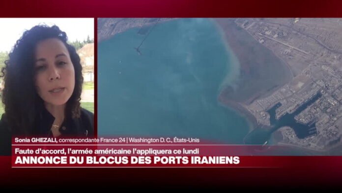 Depuis l’échec des négociations à Islamabad, où Donald Trump réclamait la réouverture du détroit d’Ormuz, une réponse était attendue : l’armée américaine a annoncé dimanche qu’elle imposerait à partir de lundi à 14 h GMT un blocus aux « navires de toutes nationalités entrant ou sortant des ports et zones côtières iraniens ». « Les États-Unis laissent le trafic international en dehors de ces ports continuer », commente Sonia Ghezali, correspondante de France 24 à Washington.