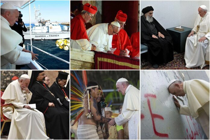 Lors de son premier voyage, à Lampedusa, le pape François jette une couronne de fleurs à l’eau, en hommage aux migrants : une photo qui a fait le tour de la planète. De la Terre sainte à l’Irak, en passant par l’Amazonie, les journalistes de La Croix reviennent sur ces images emblématiques qui ont marqué le pontificat de François et dressent, à travers elles, le portrait d’un pape à la fois humble et déterminé.