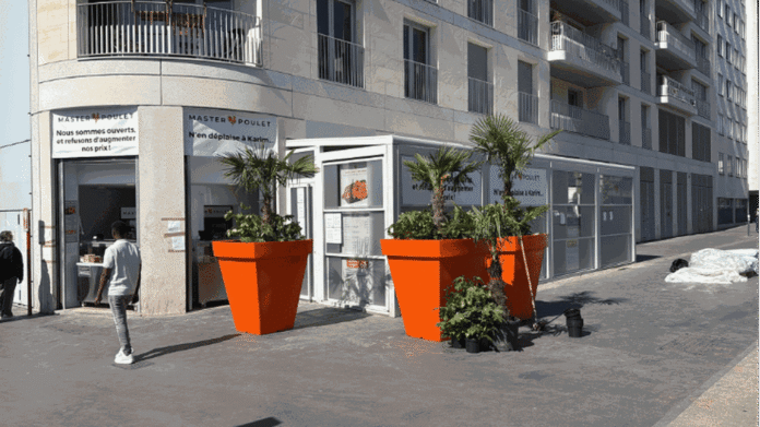 Vendredi, nouveau rebondissement : en lieu et place des blocs de béton, ce sont de gros pots de fleurs contenant des palmiers qui sont déposés devant le fast-food. Et qui dégageraient une odeur nauséabonde, décrite comme « fécaloïde » par un huissier, selon l’avocat de Master Poulet.